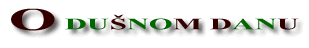 Na dan Svih Svetih u večer zvoni se običajno kako i drugdje, ako ne do zore barem do ponoći. Svjelim dušnim danom grne svjetina muklom njekom turobnosti na groblje gdje se na grobovih milih svojih pokojnikah moli. Poslje svršenih molitvah, težkih uzdisajah i ljuta, mukla, malotrpna placa dohadja u crkvu, bude kod sv. službe božje, pod kojom na stotine vošcenicah gore, i odpravlja se moleć ka kući. Večernjom sutoni uzimlje puk ovakove sviećice opet i ide nižuć rieči kroz nabožne misli na brojanice put vjekostana , na koga grobovih tinjaju uljanice cielo popodne pa sve do njeko doba noći, doklegod nabožnici neodlaze doma na spanak. To sve biva u najvećoj tišini, sve do sutradan. Druge osobitosti nema nikakve. |